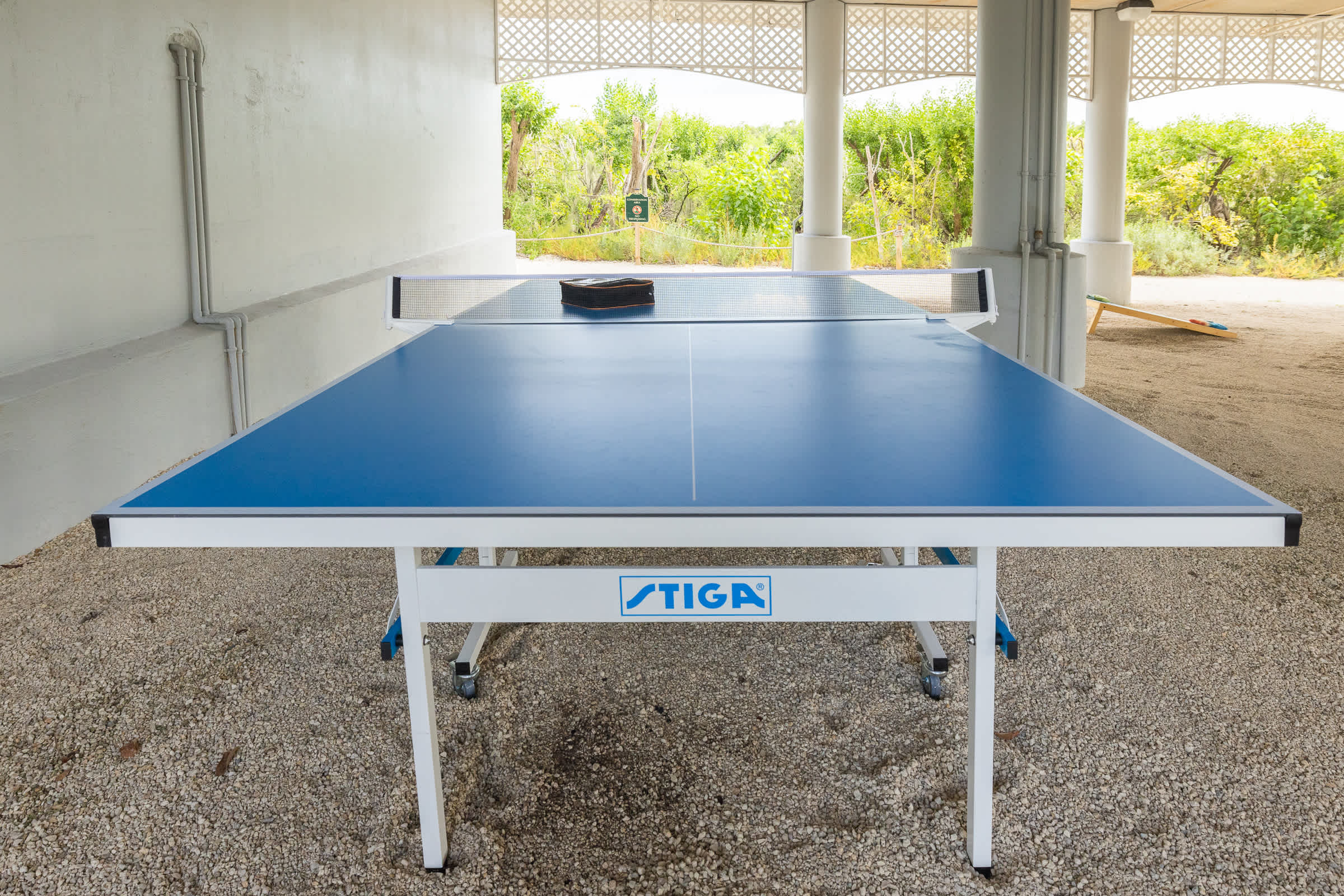 The Master Bedroom has its own in suite bathroom. The guest bedroom has its bathroom located right outside the door via the hallway. The kitchen is fully stocked and you have your choice of drip coffee maker as well as a Keurig. Plenty of seating for your entire family to comfortably enjoy your meals or just hang out. Underneath this building, you will find comfortable outdoor furniture to lounge in and charcoal BBQ grills.